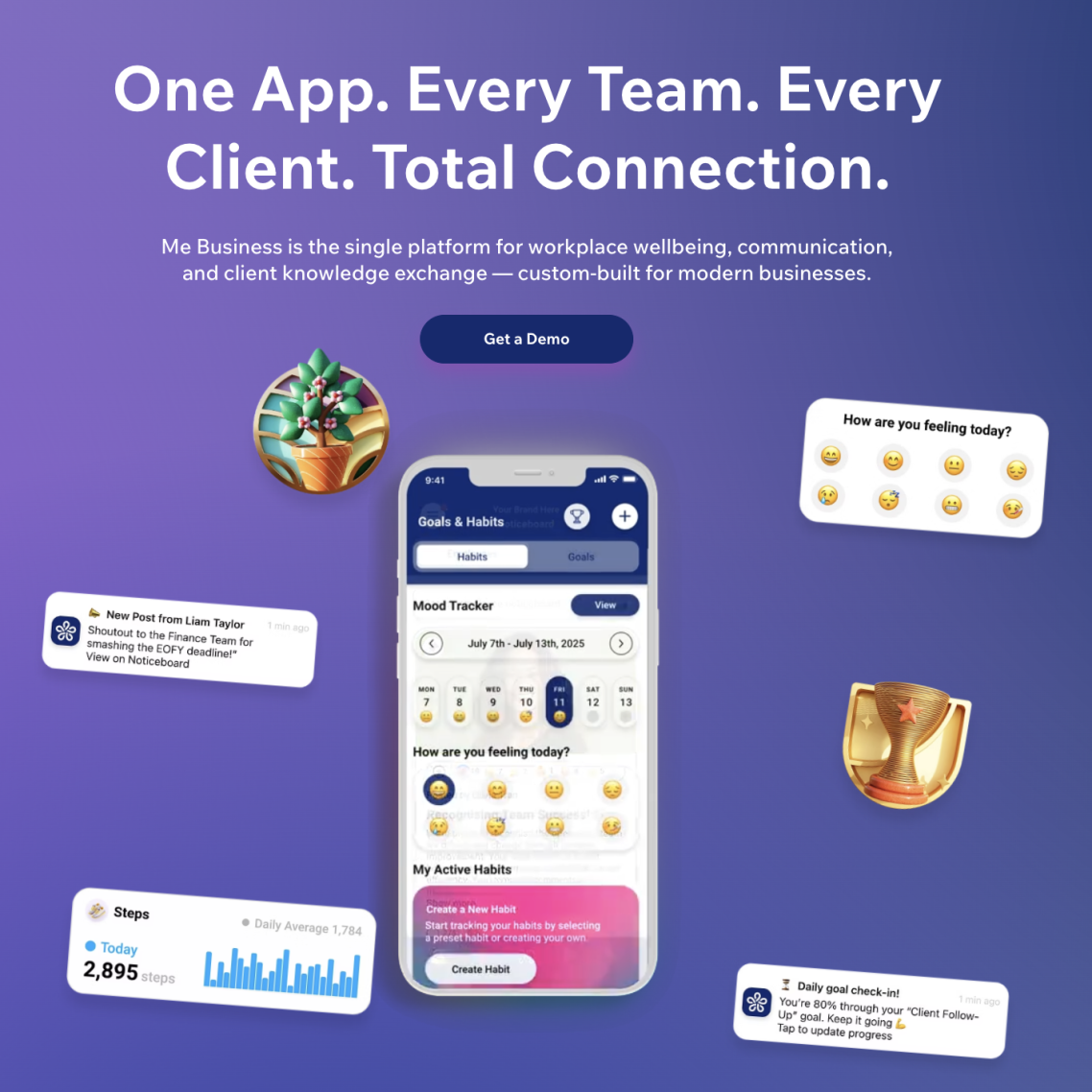 Me Business is a workplace wellness platform built to empower organisations with the tools they need to support staff wellbeing and business growth. Our mission is to combine corporate wellness programs, employee assistance solutions, and business management features into one easy-to-use platform.
